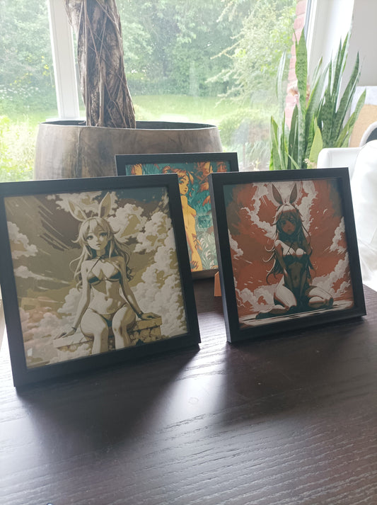 Leuchtende Erotik Anime-Eleganz im Holzrahmen