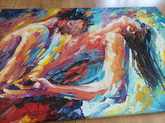 Handarbeit: Abstraktes Öl Gemälde Kunstwerk Erotik Paar