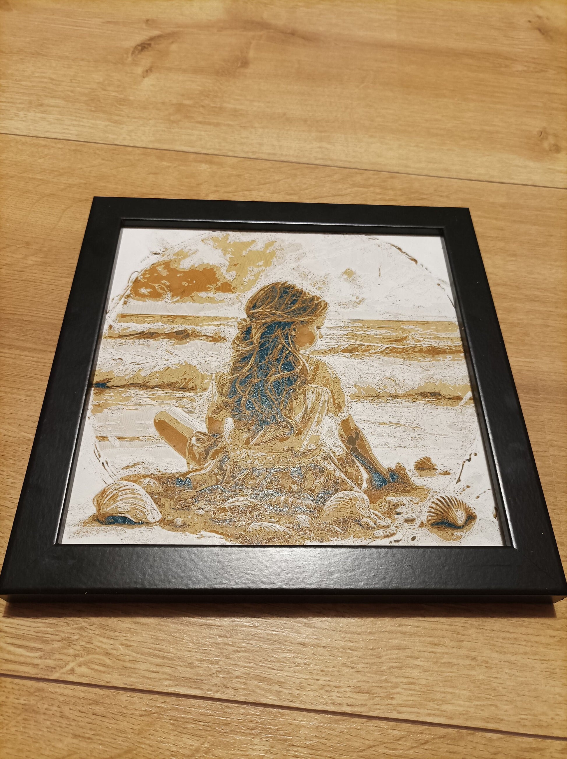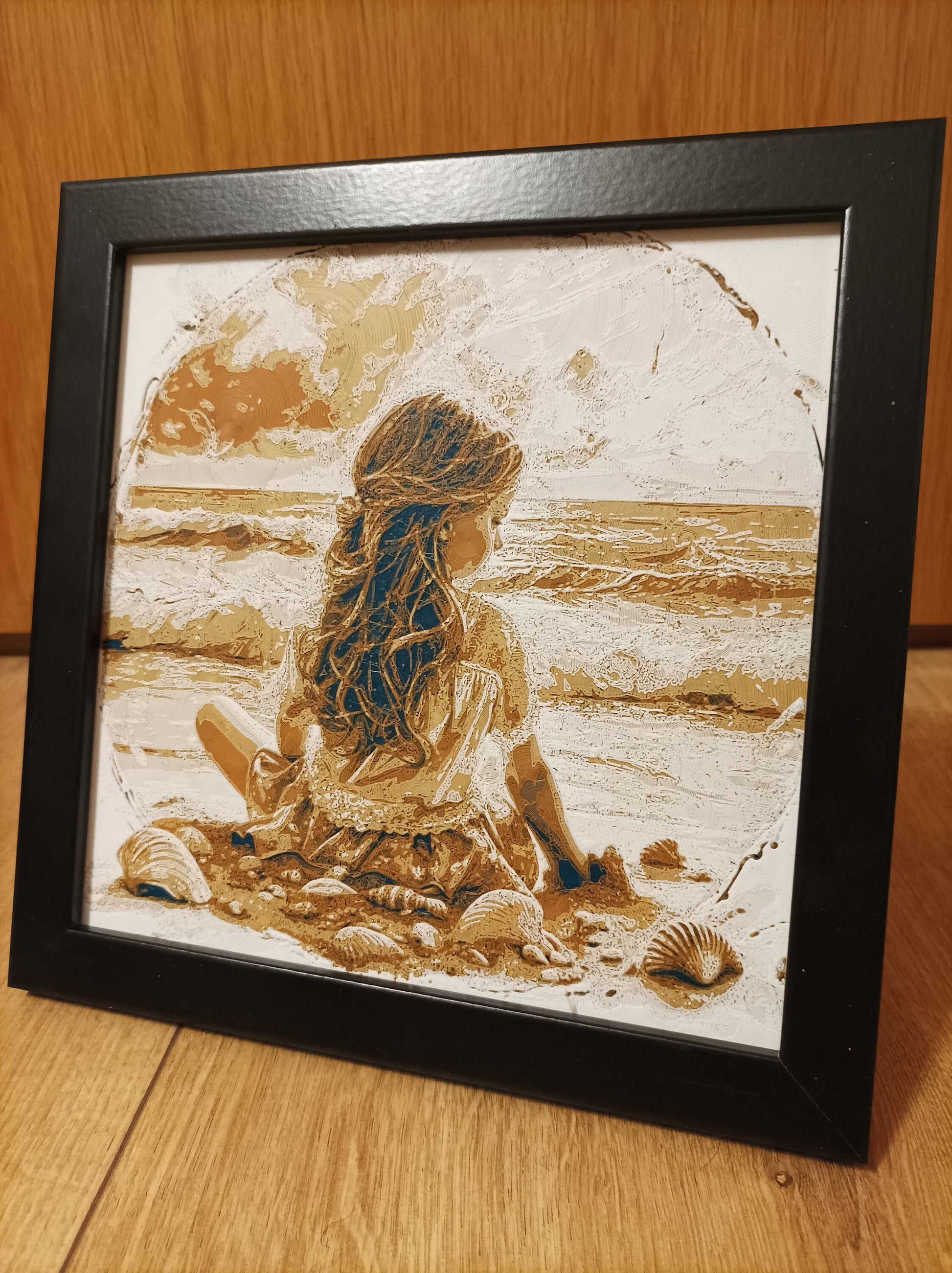 3D-printed wall mural "Girl on the Beach" with frame, 22x22 cm