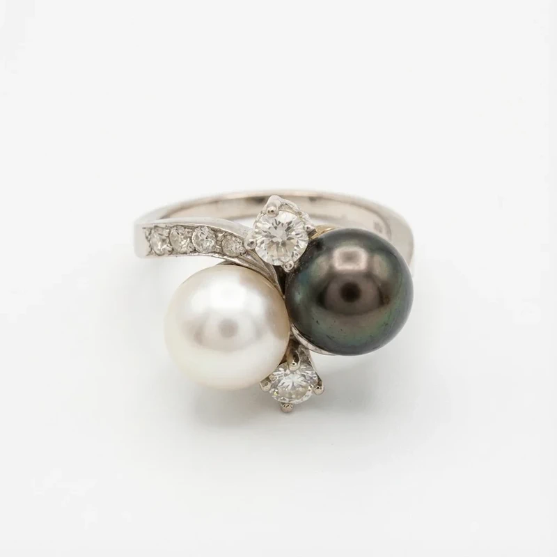 Exquisiter Toi et Moi Ring 750 Weißgold – Diamanten, Tahiti & Akoya Perlen