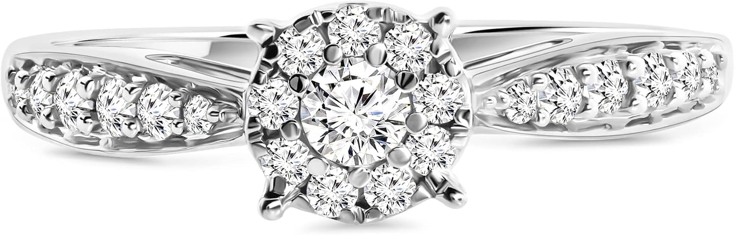 Miore Women's 0.30 Carat Diamond Engagement Ring in White Gold 9 Carat / 375 Gold, Jewellery with Diamonds