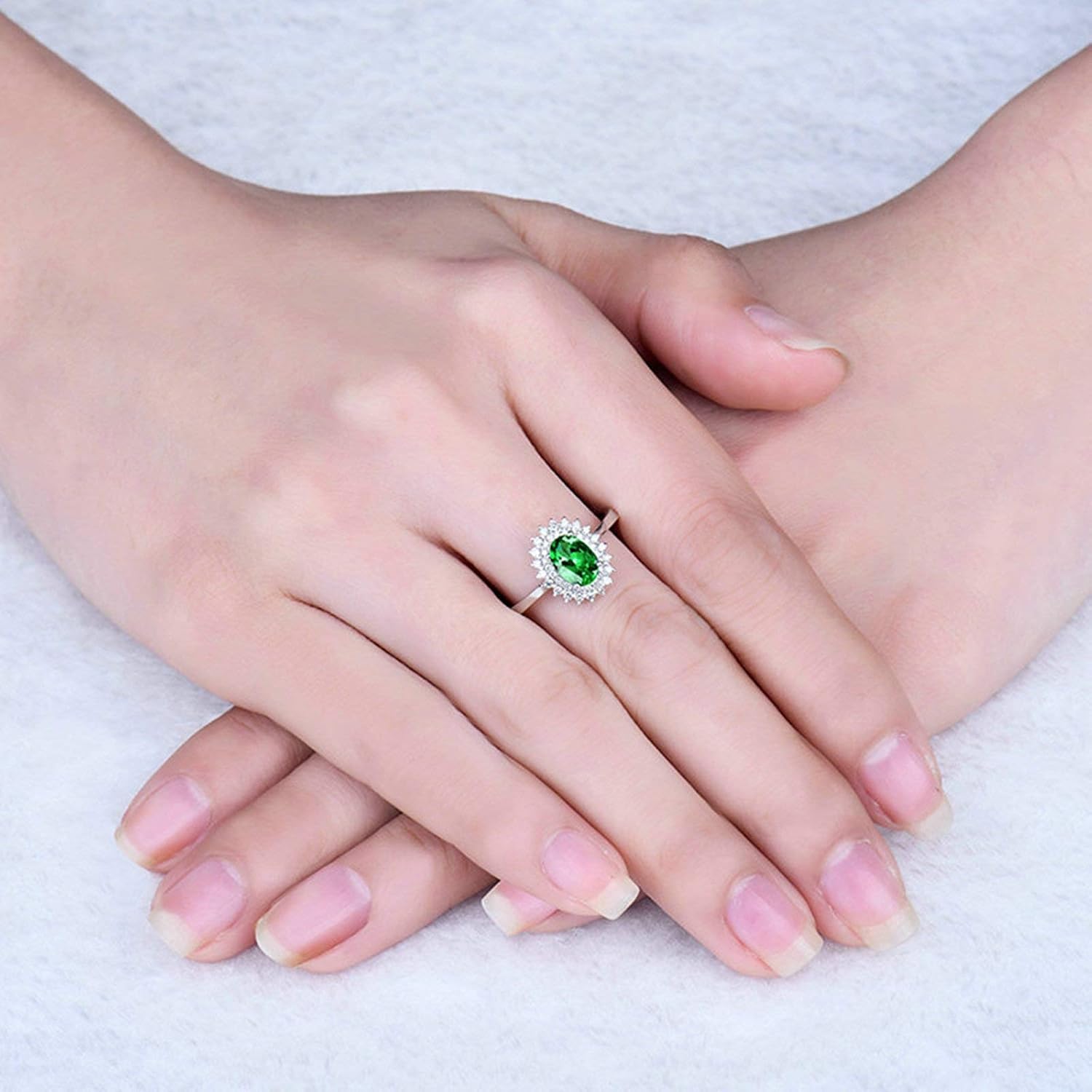Women's Wedding Rings 750 Real Flower Ring with Oval Tsavorite 0.76 ct, Engagement Rings Wedding Ring White Gold Diamond