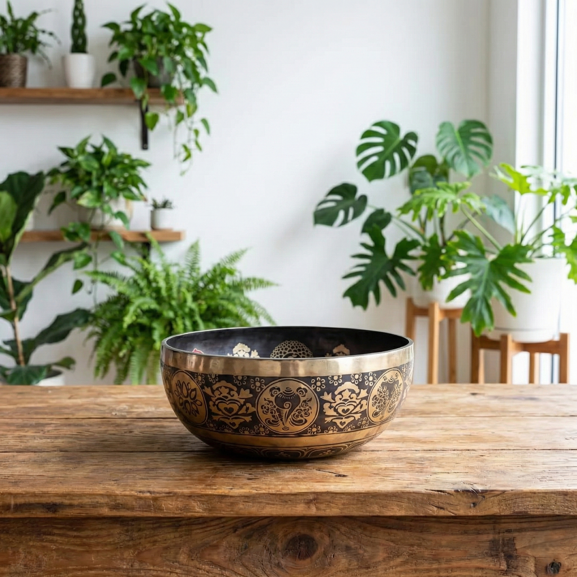 Handgehämmerte Klangschale mit 7 Chakren & Yogini – Ø 38 cm