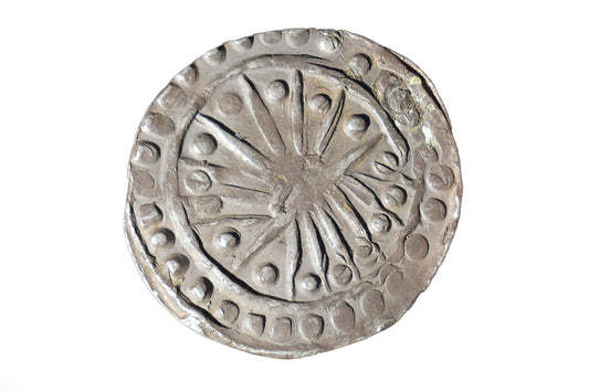 Stara srebrna moneta Królestwa Pyu, Sri Ksetra, Myanmar, IX w. n.e.
