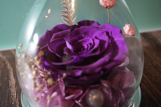 Szklana figurka anioła z prawdziwą różą, ręcznie robiona, zakonserwowane róże | Róże w szklanej kopule
