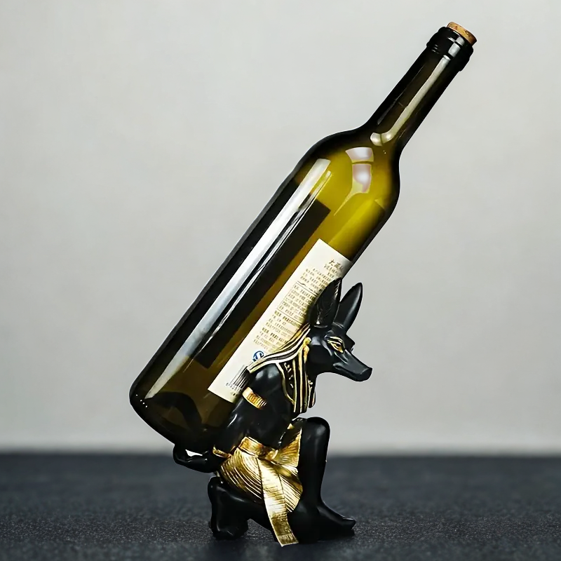 Egipski stojak na butelkę wina Anubis – dekoracyjna figurka z żywicy