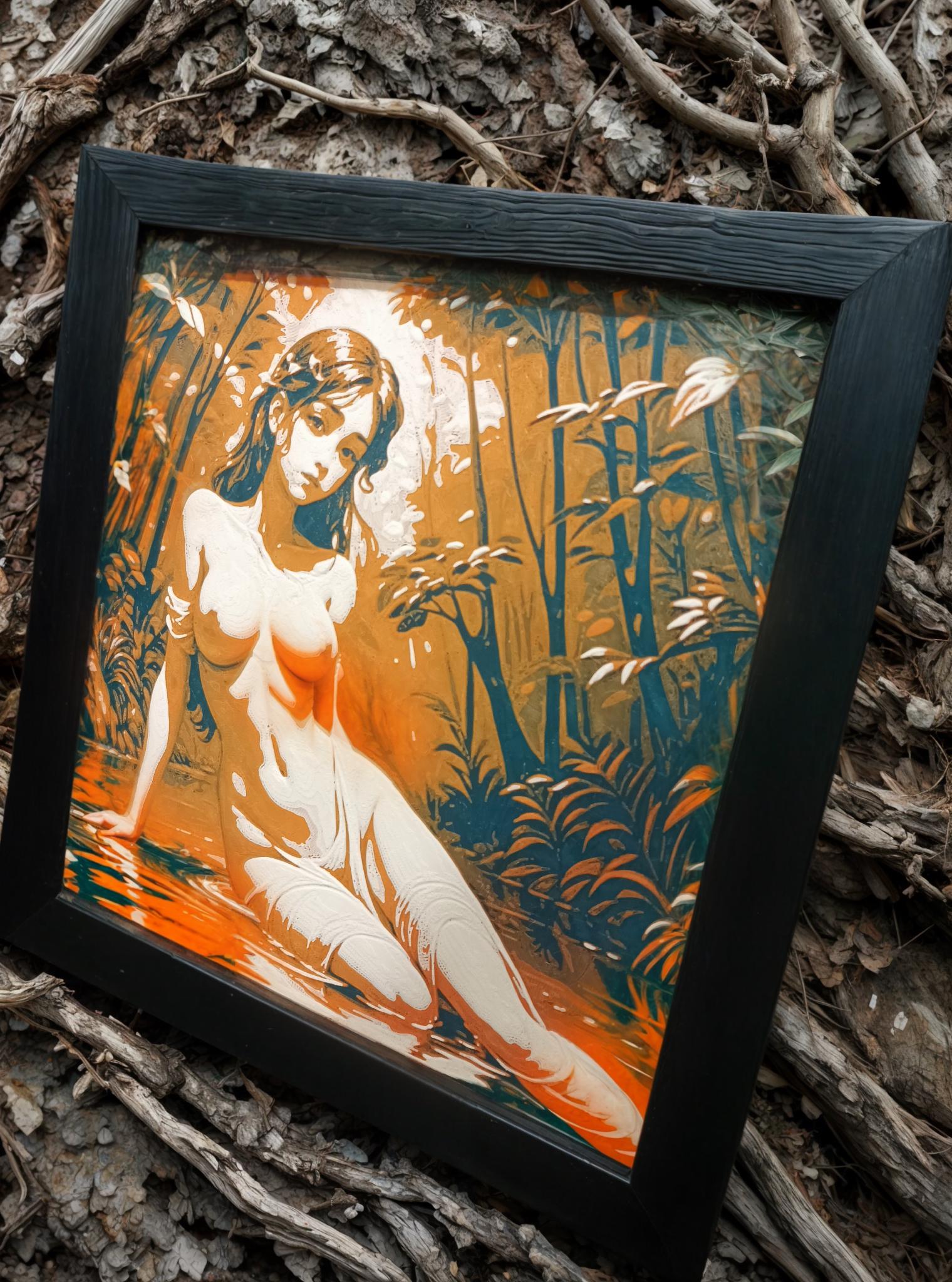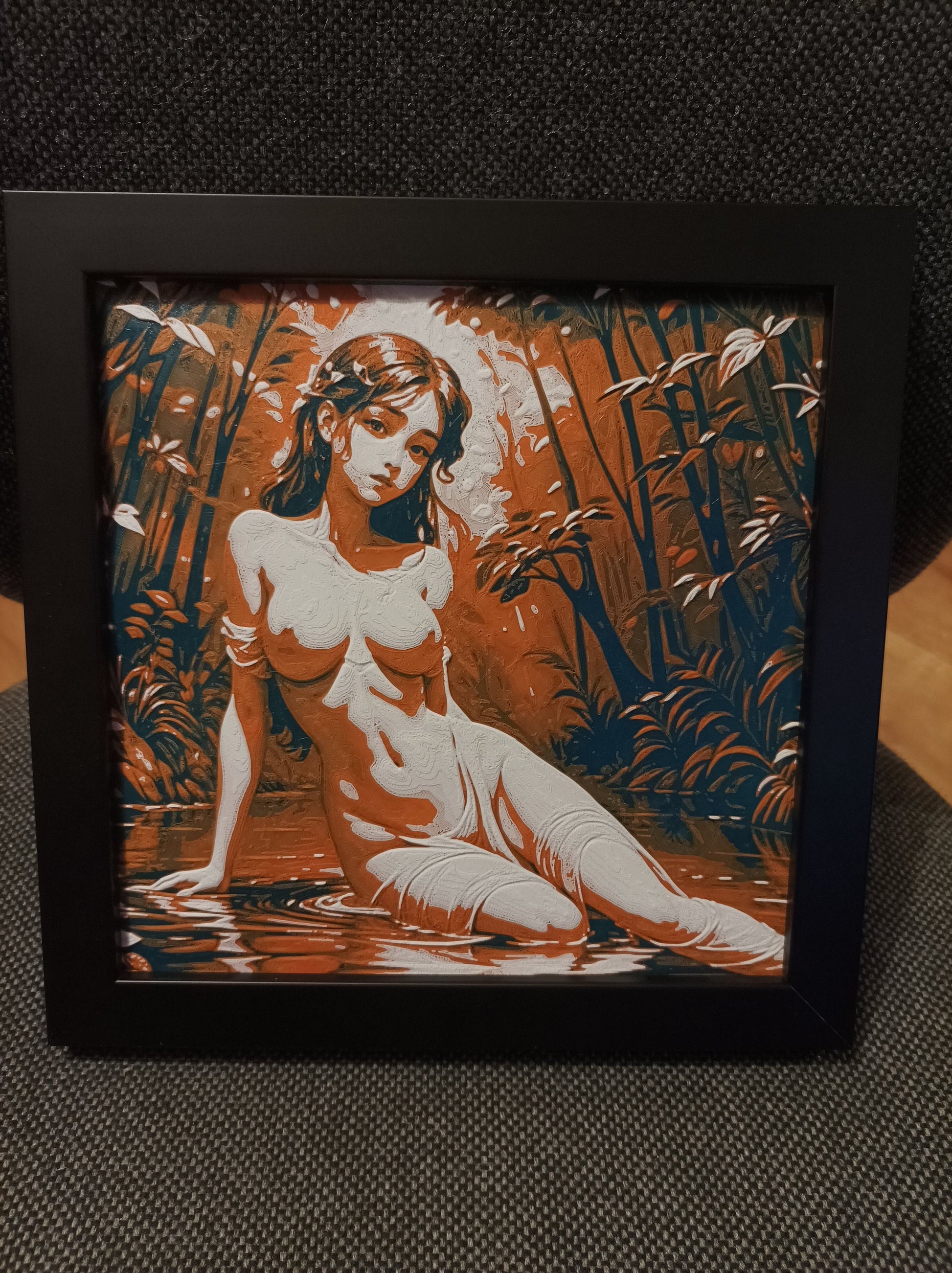 Odkryj magię tego drukowanego w technice 3D dzieła sztuki, które doda każdemu wnętrzu odrobinę zmysłowości. 🌾🎨 Elegancka kobieca postać na tle spokojnego, naturalnego krajobrazu sprawia, że ten obraz staje się prawdziwym tematem do rozmów. Wykonany z precyzją i dbałością, efekt 3D nadaje dziełu wyjątkowego wymiaru, wyróżniając je z czarnej ramy. Idealny dla kolekcjonerów i miłośników sztuki, którzy chcą dodać mu odrobinę erotycznego uroku.
