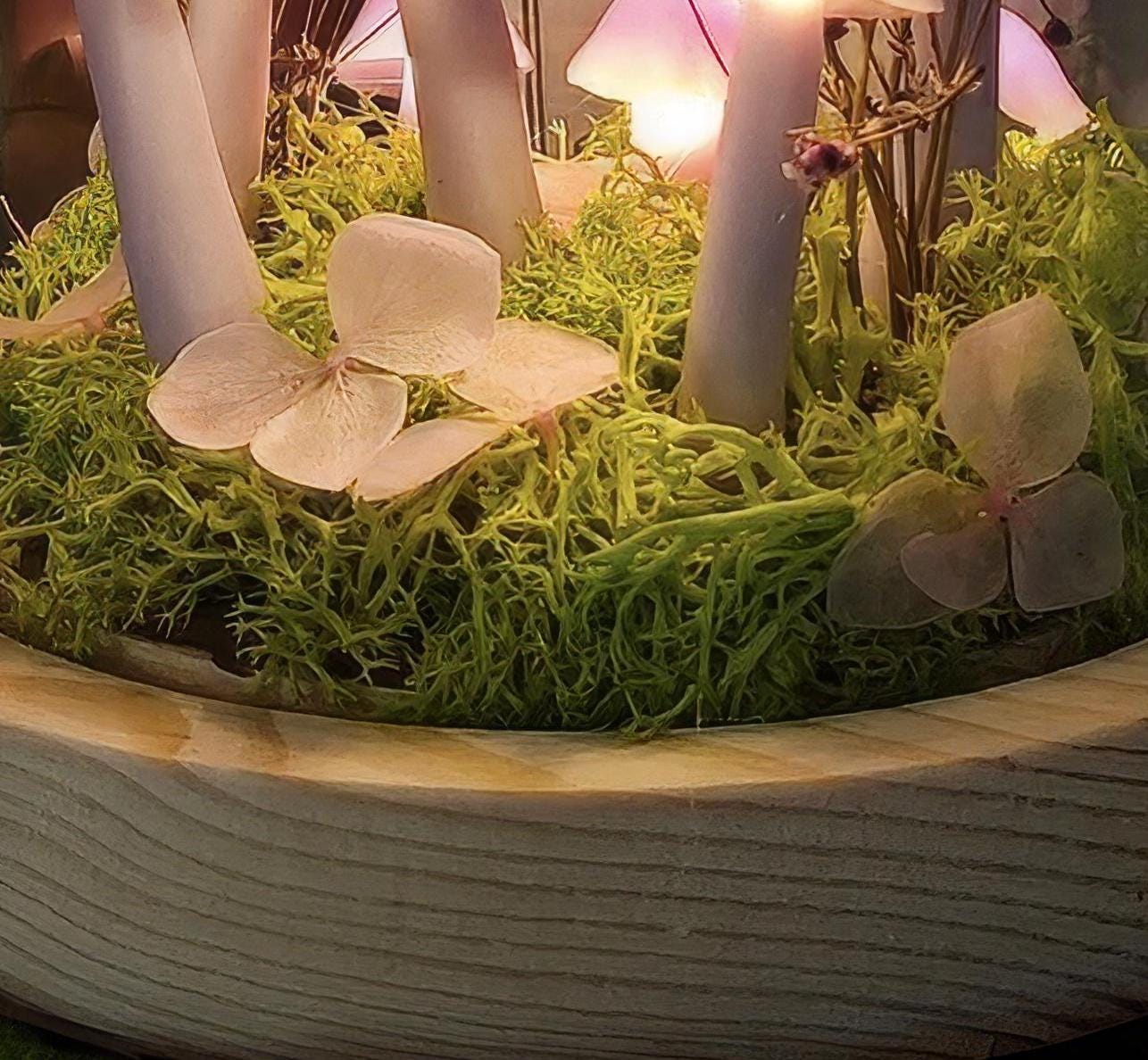 Wprowadź odrobinę magii do swojego domu dzięki tej czarującej, świecącej lampie w kształcie grzybów. Ta wyjątkowa lampa przedstawia delikatne, fioletowe grzyby osadzone w szklanej kopule na drewnianej podstawie. Delikatne, ciepłe światło tworzy przytulną i zachęcającą atmosferę, idealną do każdego pomieszczenia w Twoim domu.