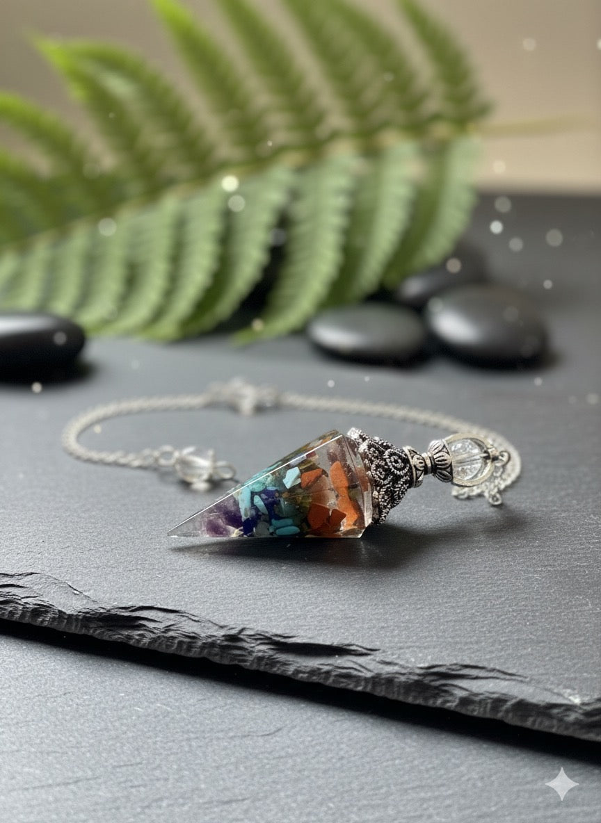 Tauche ein in die Welt der Energiearbeit mit diesem wunderschönen Chakra-Pendel.