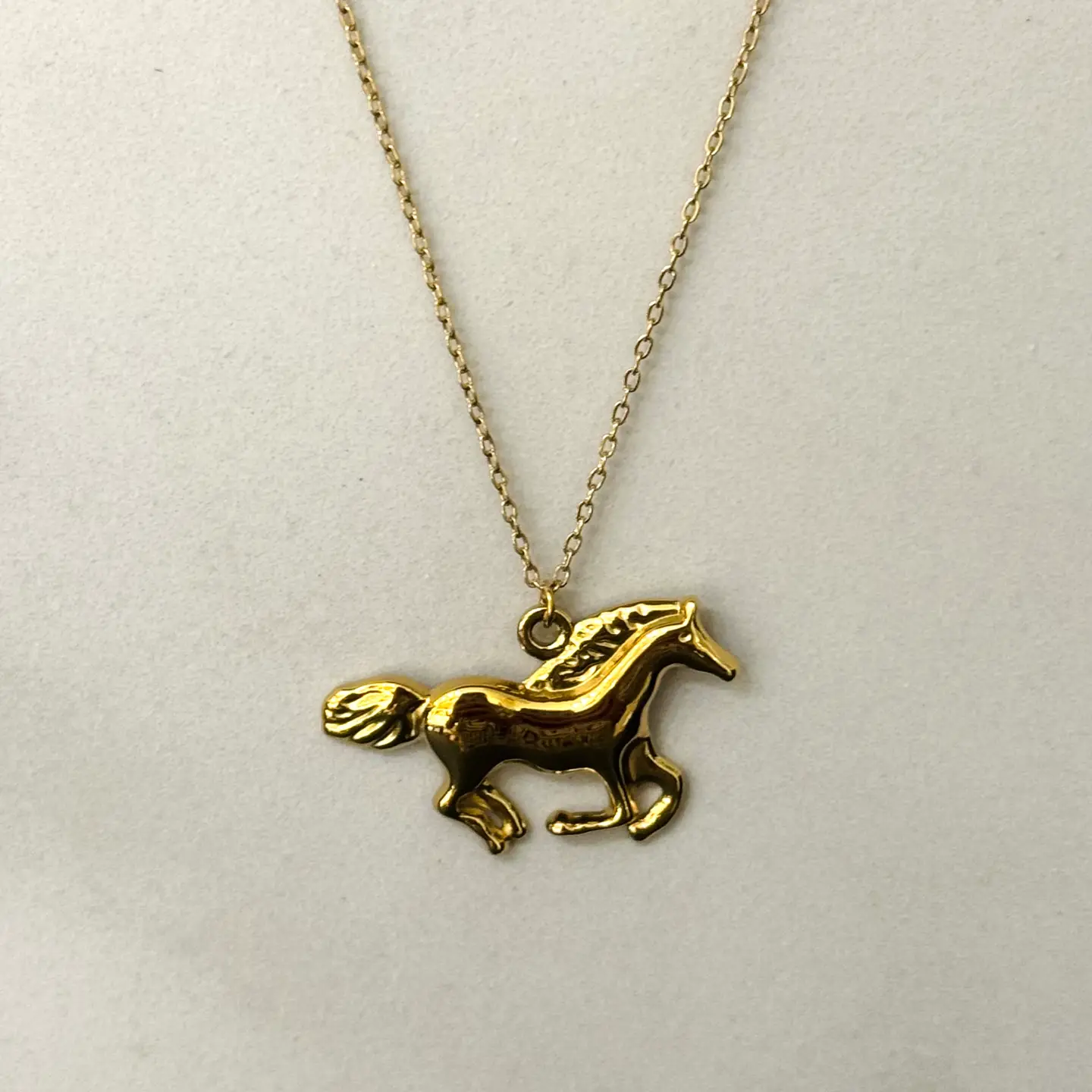 Neu & ungetragen. Goldfarbene Halskette mit galoppierendem Pferd – ideal für Pferde-Fans.