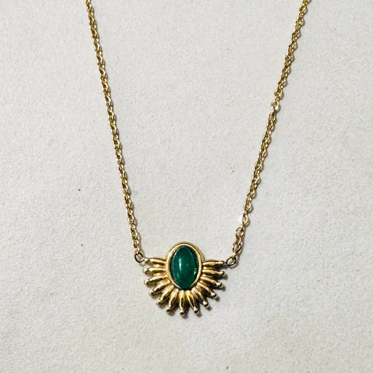 Titel: Halskette gold – grüner Stein Sunburst | Boho | 25 € | kostenloser Versand