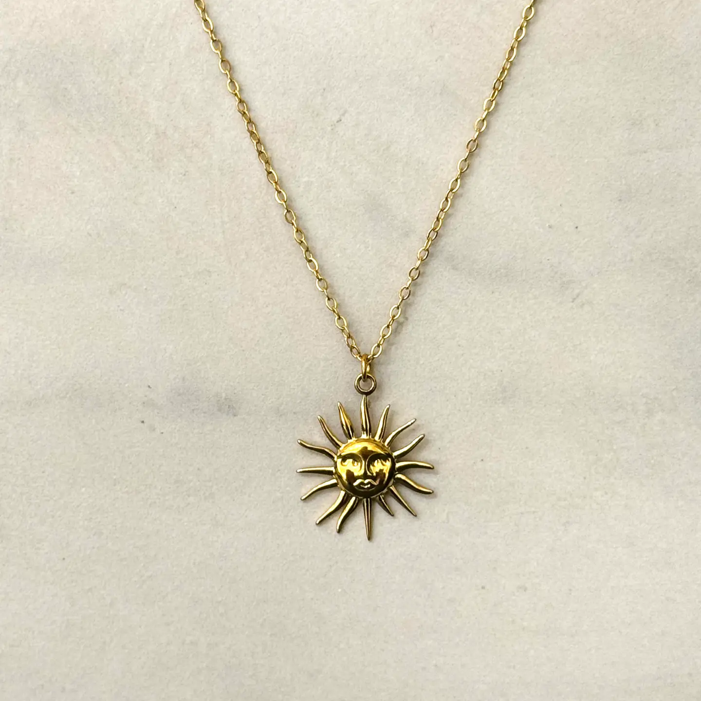 Neu & ungetragen. Goldfarbene Halskette mit Sonnen-Anhänger im dezenten Vintage-Look.