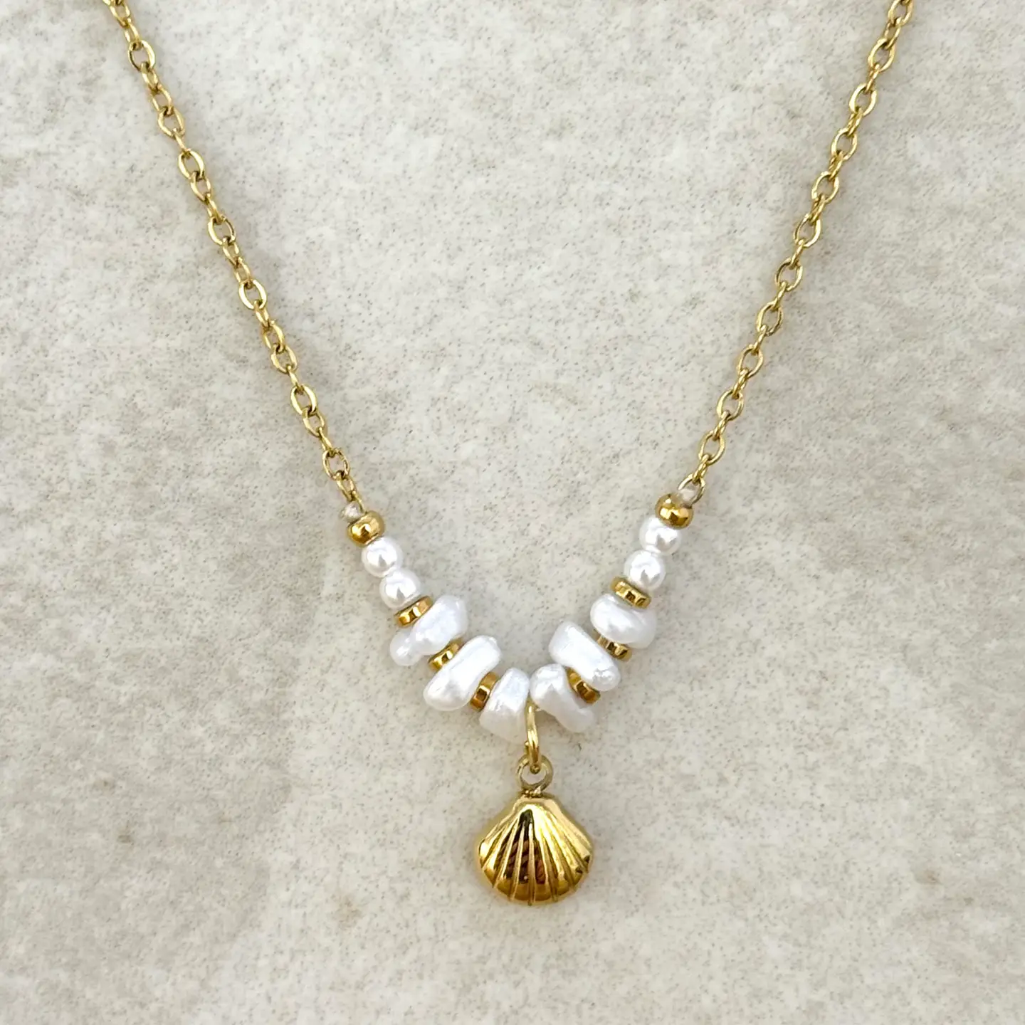Titel: Halskette Goldfarbene– Muschel & Perlen | maritim | 25 € | kostenloser Versand