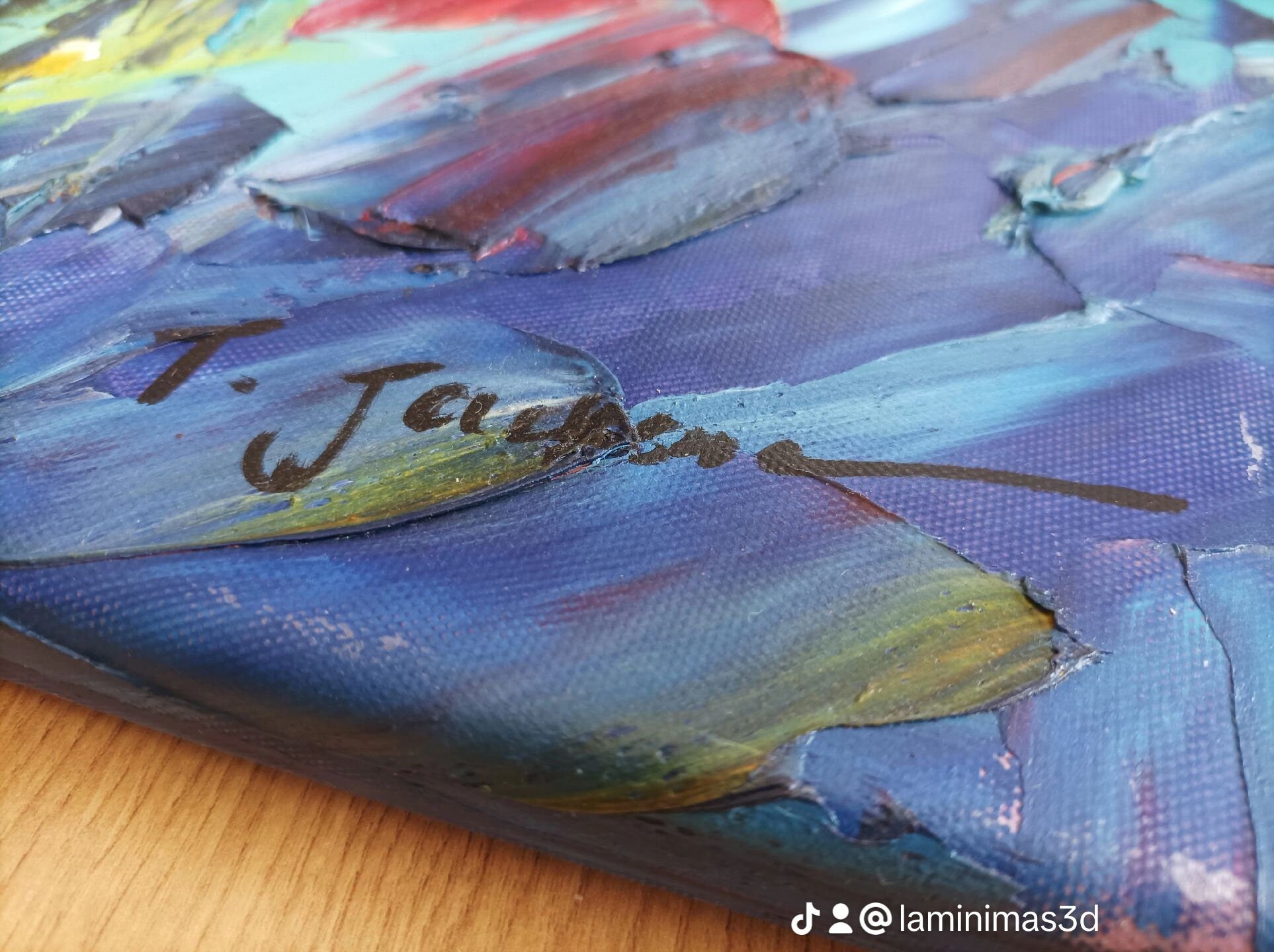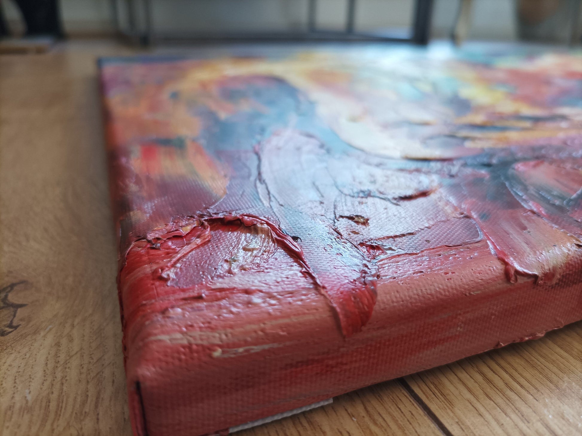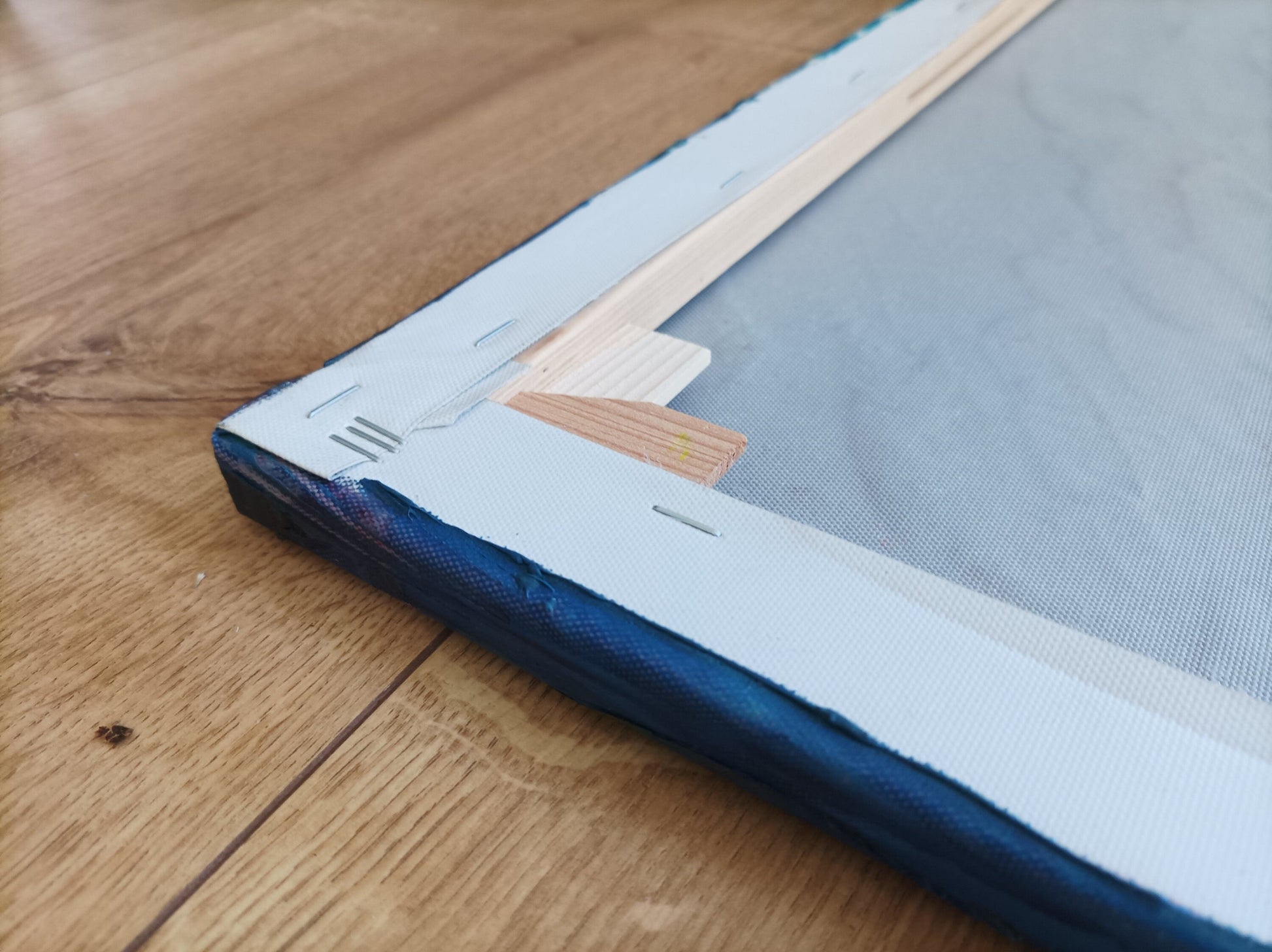 Die Ränder des Keilrahmens sind in der Fortführung des Motivs bemalt, was das Bild zu einem vollendeten Objekt auch ohne Rahmen macht.