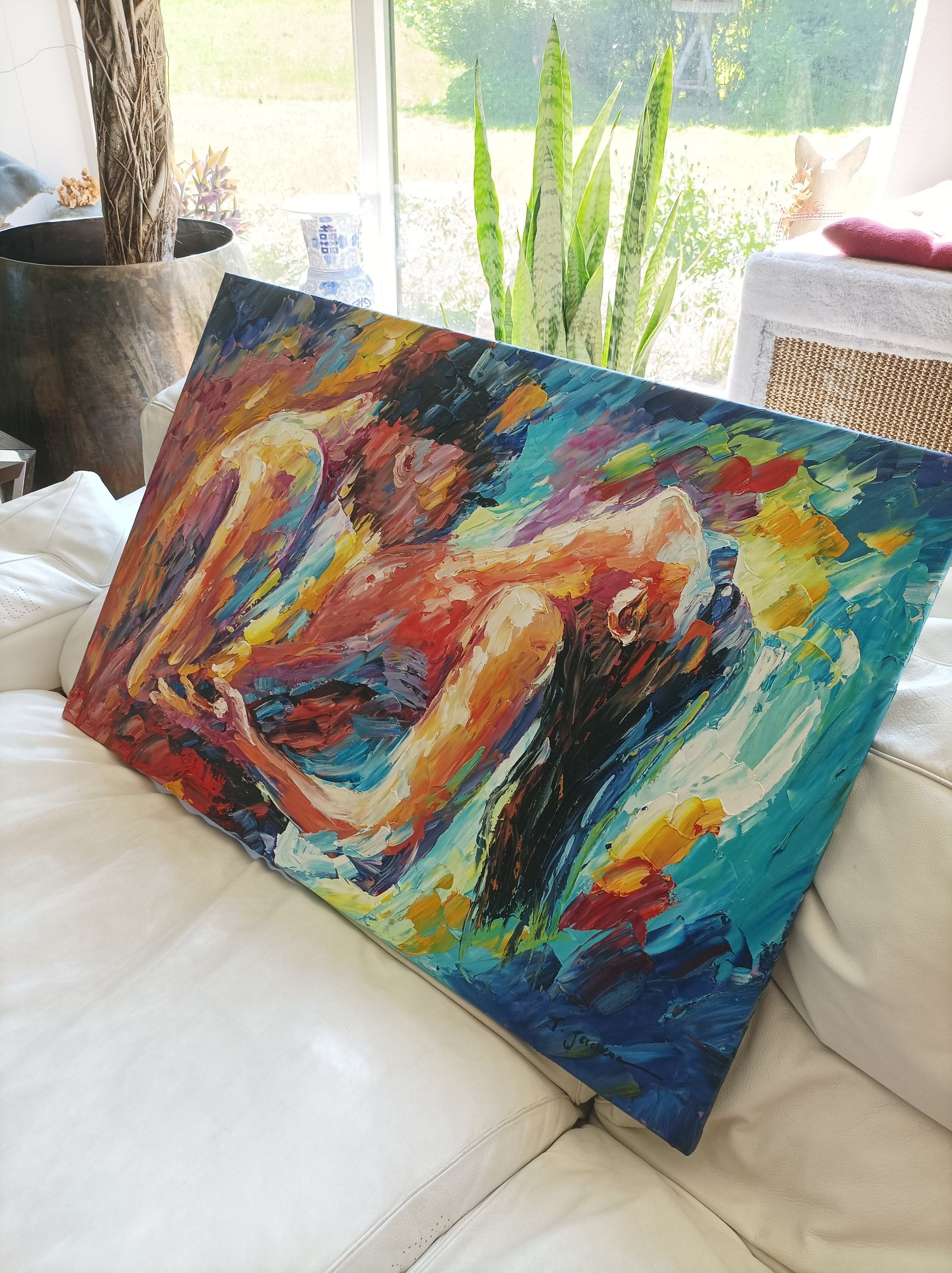 Handarbeit: Abstraktes Öl Gemälde Kunstwerk Erotik Paar