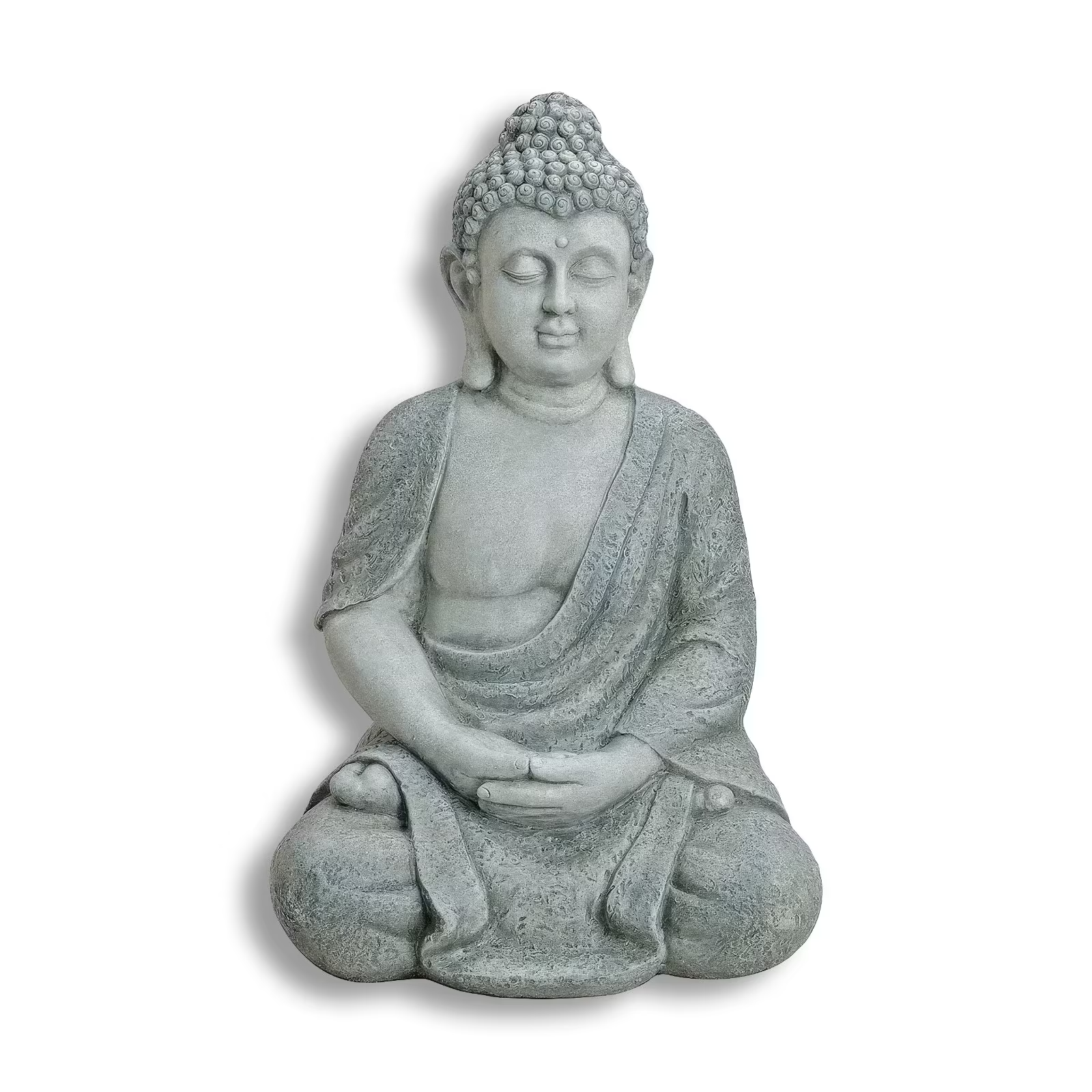 Sitzender Buddha 62 cm aus Poly – Graue Deko-Statue