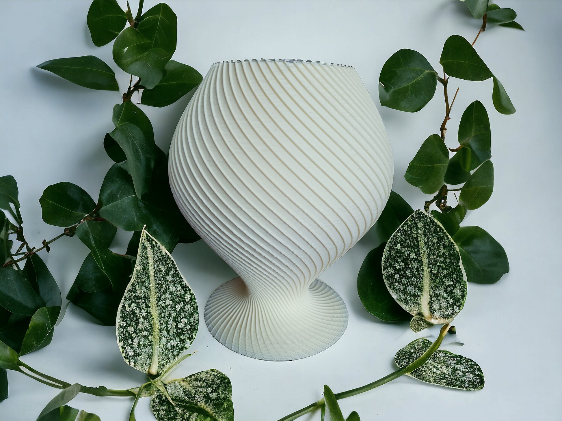 Entdecken Sie die Fusion von Technologie und Natur mit dieser skulpturalen 3D-gedruckten Vase, einem texturierten Meisterwerk, das einen Hauch von Botanik in Ihr Zuhause bringt. Diese Vase zeichnet sich durch ein geschichtetes Design aus, das an natürliche Formen erinnert und sowohl haptisch als auch visuell in jedem Raum für Interesse sorgt. 🌿