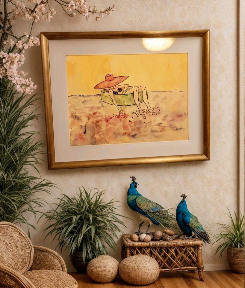 Der vergoldete Rahmen hebt die künstlerische Darstellung hervor und verleiht dem Werk eine luxuriöse Note.