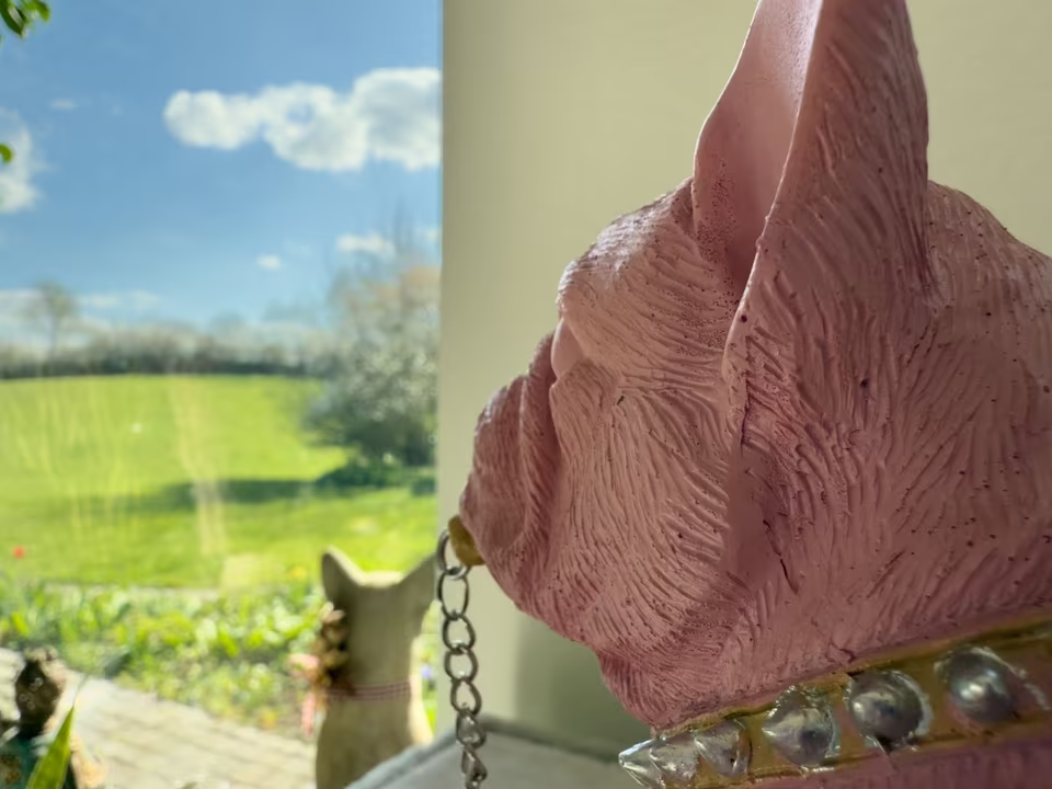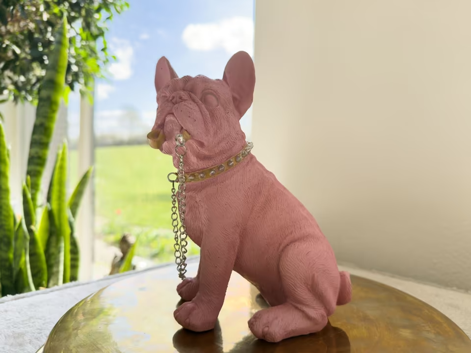 Stylische Bulldoggen-Figur in Pink – Mit Glitzerhalsband & Kette