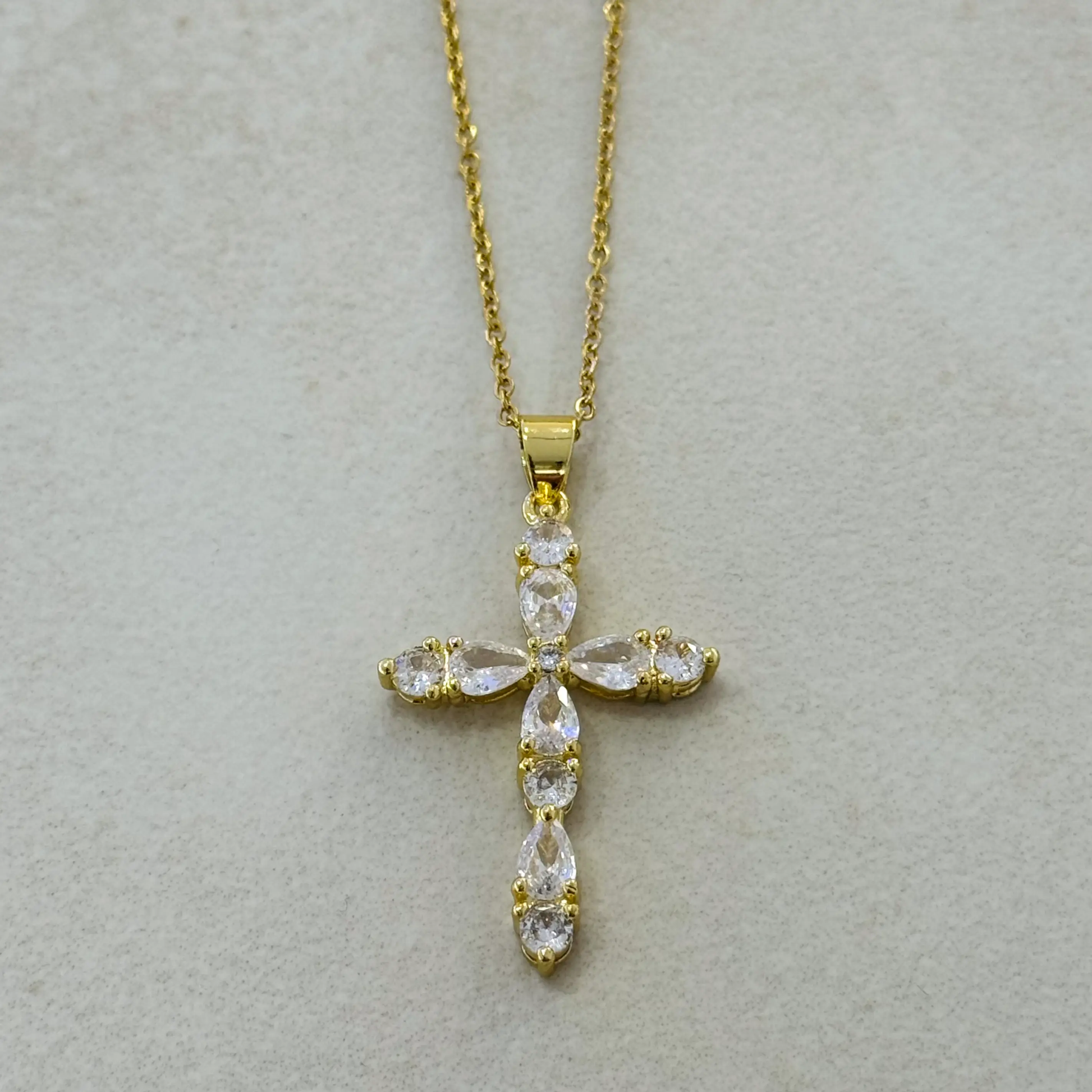 Titel: Kreuz Halskette goldfarbene mit funkelnden Steinen | 25 € | kostenloser Versand