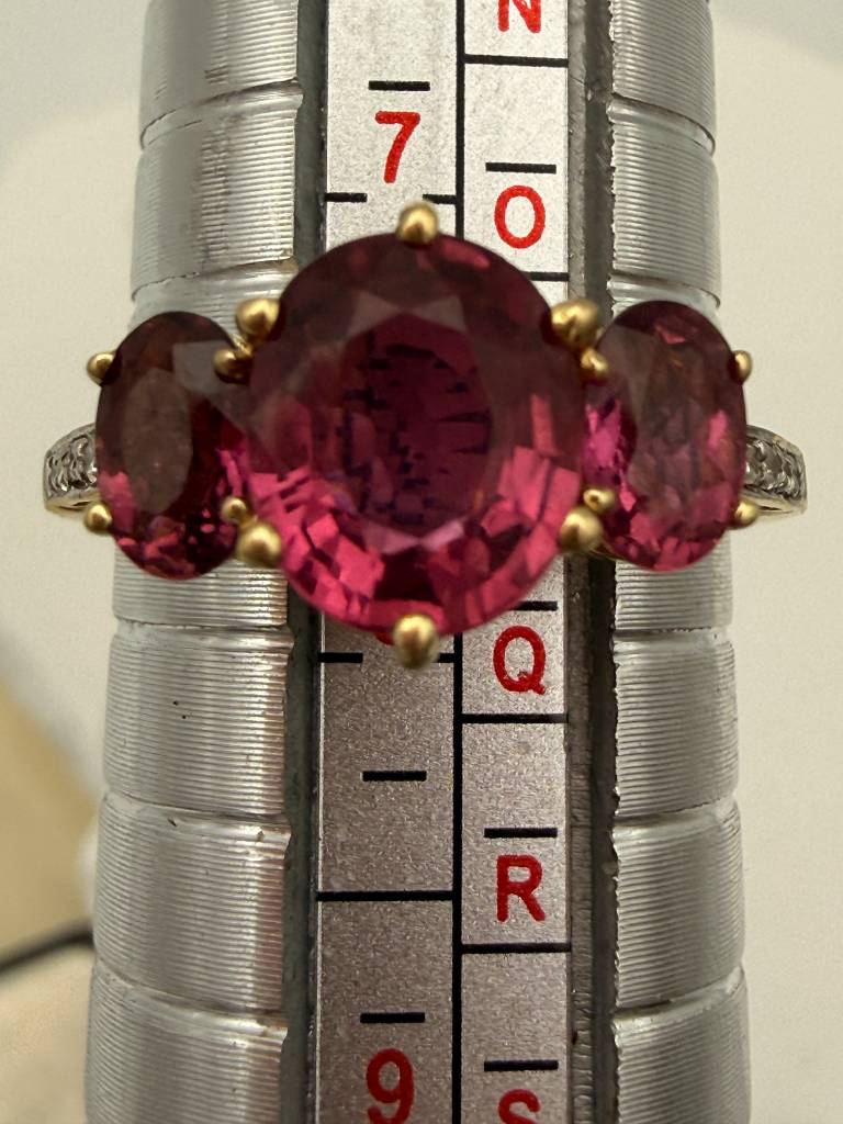 Vintage Traum: 585 Goldring mit Turmalin & Diamanten – Himbeerrosa Glanz