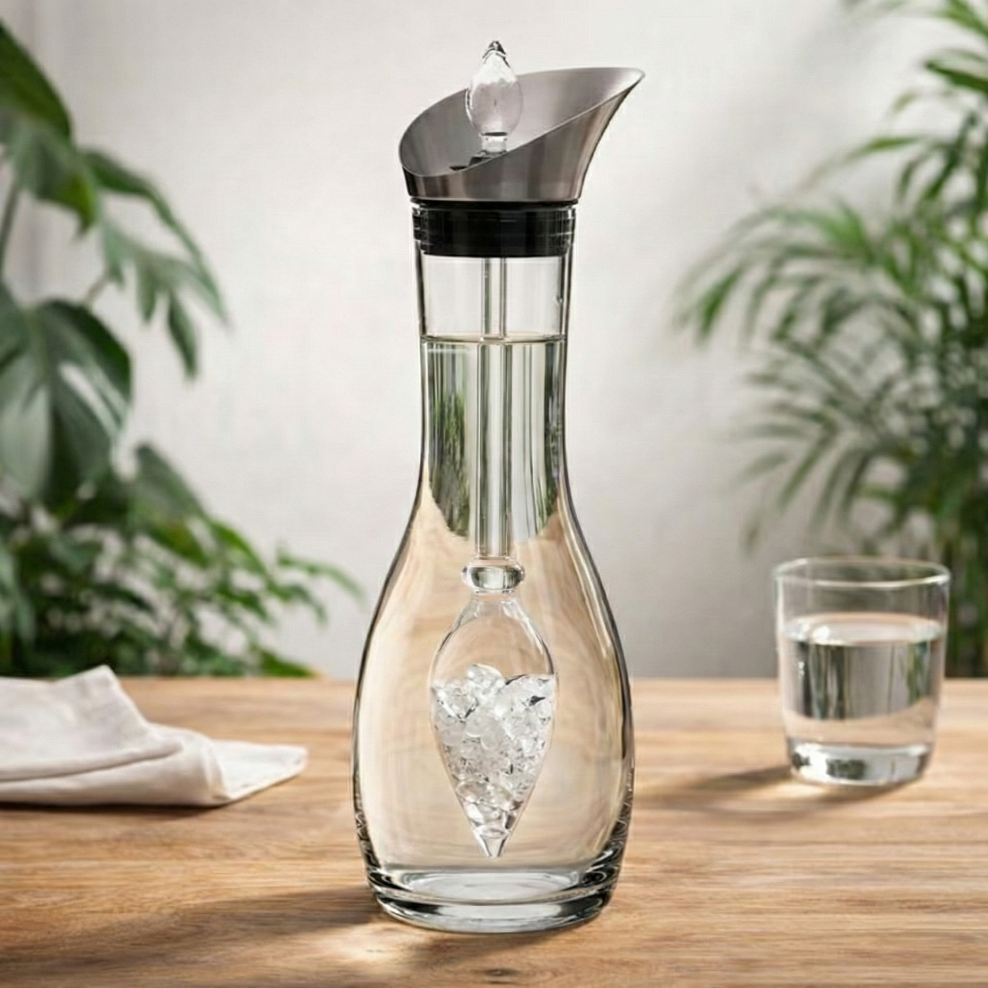 Die Karaffe Era – Design trifft Funktion: Die Karaffe wurde speziell entwickelt, um die Edelsteinphiole sicher und schwebend zu halten. Sie bietet zahlreiche Vorteile: